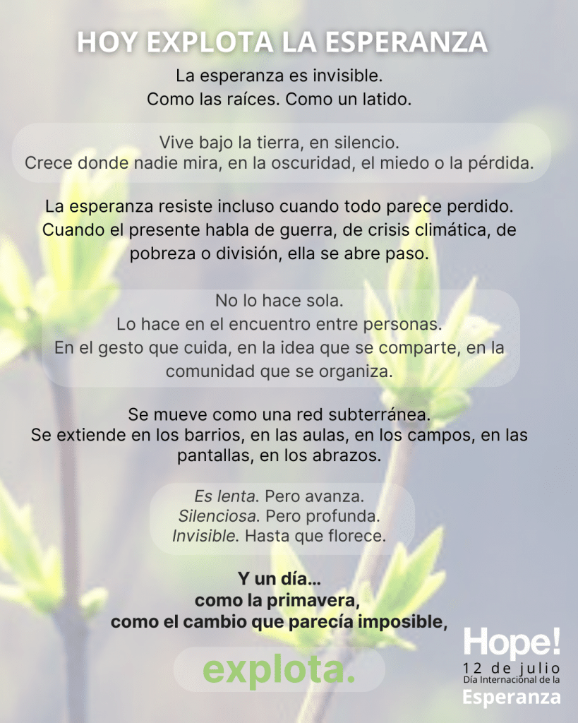 Celebramos el Día Internacional de la Esperanza con un poema que acompaña a una red de ideas, acciones y futuros que hablan de esperanza.